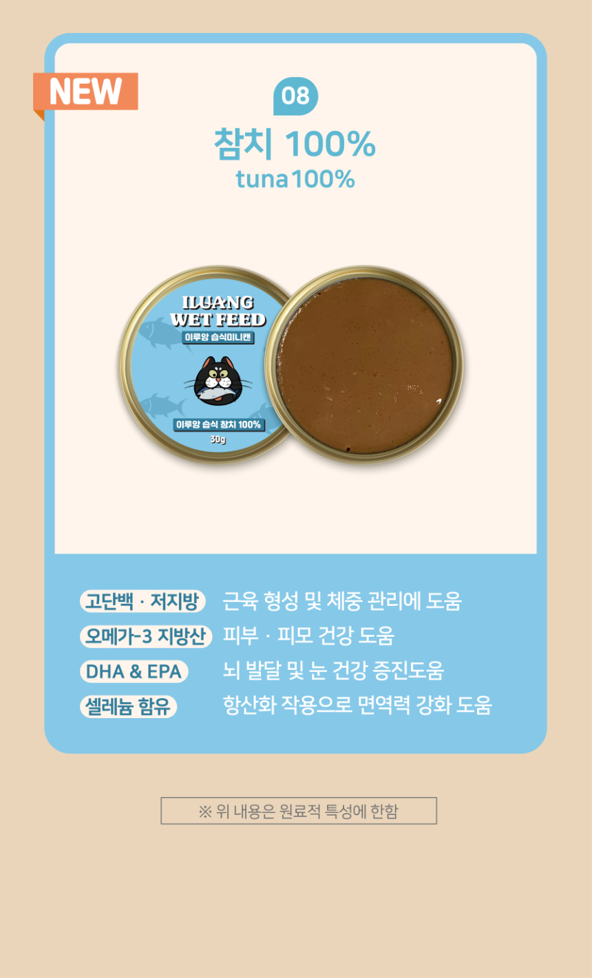 이루앙 브랜드는 천연소재인 아스코필럼노도섬이 함유되어있어 구강건강에 도움을 주는 반려묘 습식사료로