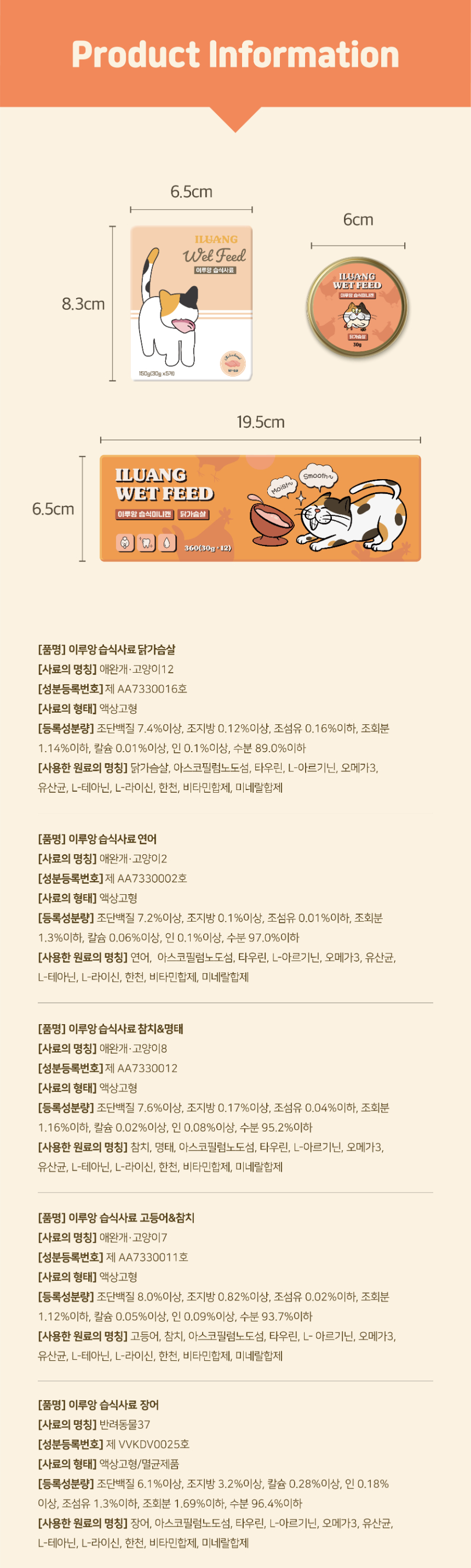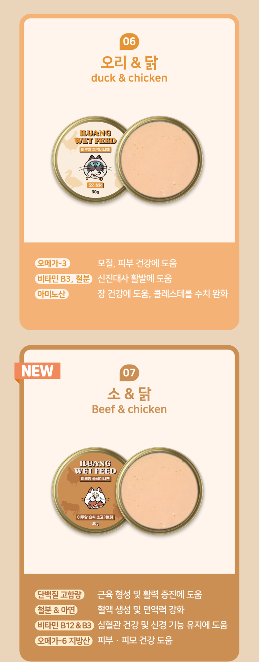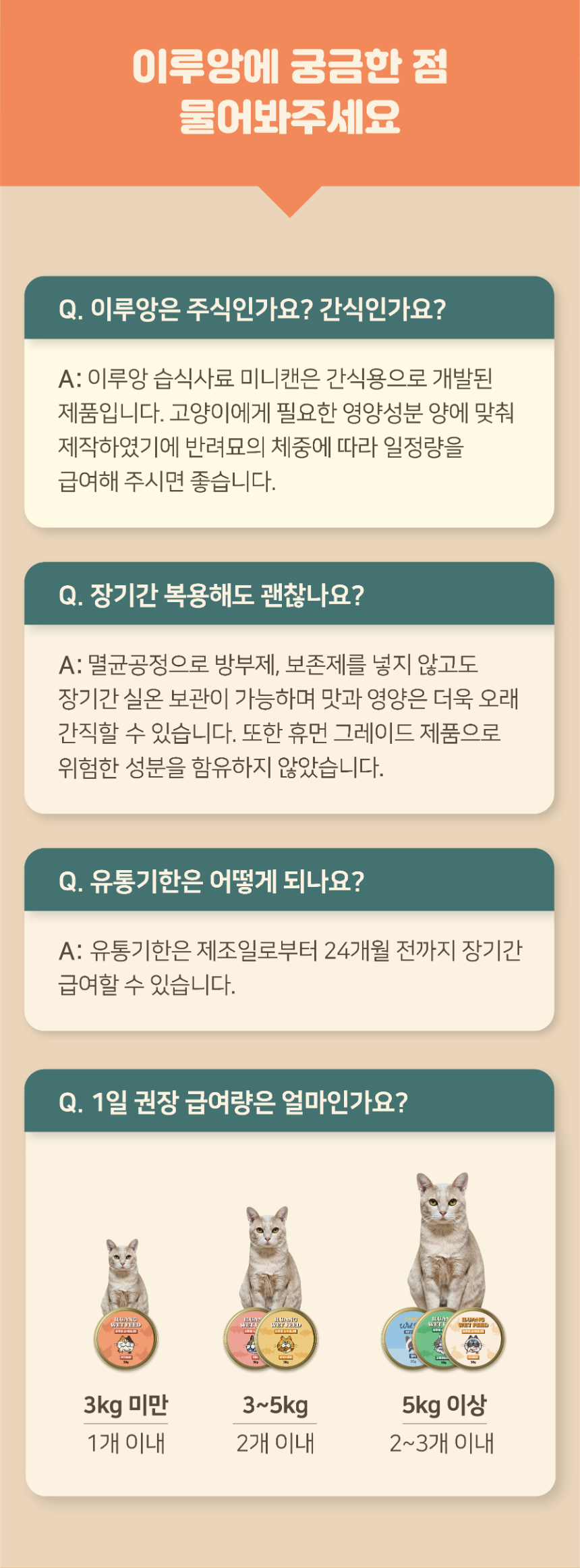 이루앙 브랜드는 천연소재인 아스코필럼노도섬이 함유되어있어 구강건강에 도움을 주는 반려묘 습식사료입니다.