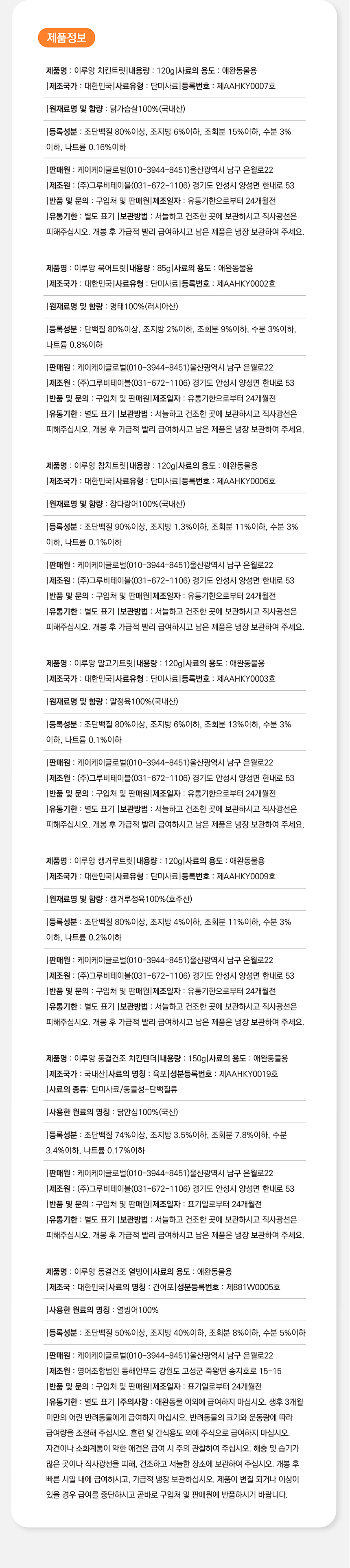 #베러펫 #이루앙 #동결건조 #북어 #닭가슴살 #참치 #캥거루 # 말고기 #치킨텐더(닭안심) #열빙어