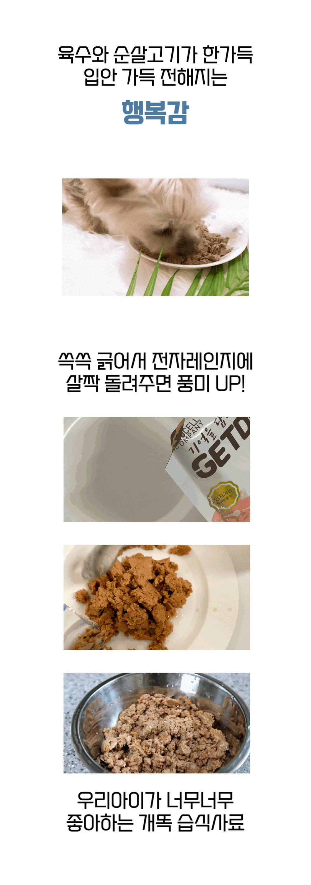 인지장애증후군 개선에 도움을 주는 반려견 전용 습식사료입니다. 전연령 급여 가능 합니다. 방부제, 향료, 색소, 항생제, 화학물을 일체 첨가하지 않은 안전한 사료 입니다.